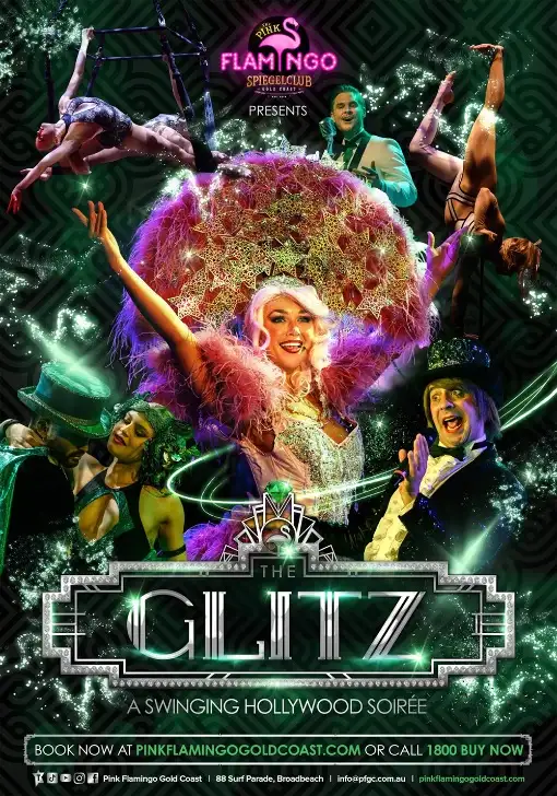 Get lost in a time of decadence and sin in the town of showbiz dreams. The Glitz is an extravaganza of dazzling costumes, dancing and singing, edgy cirque performances and outrageous comedy. This is one swinging Hollywood soirée you do not want to miss!