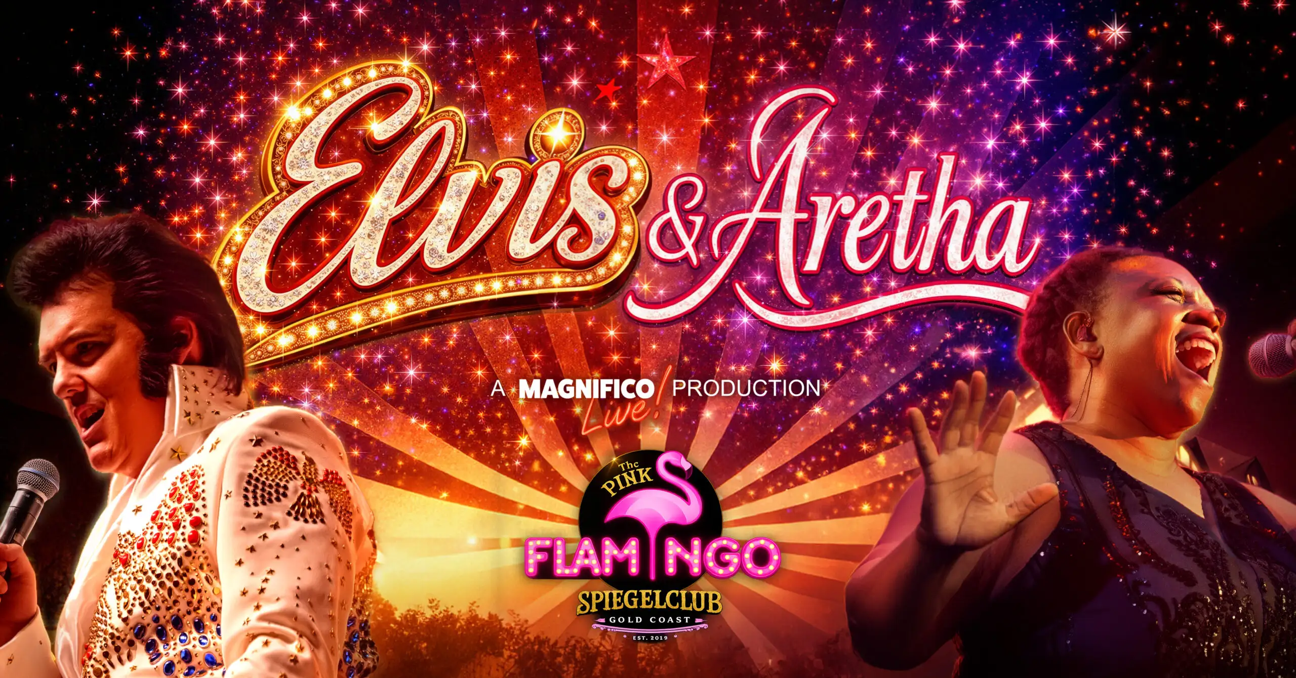 For the first time ever, Elvis Presley and Aretha Franklin are celebrated together in one electrifying live concert event, as these two music giants take over the iconic Pink Flamingo Spiegelclub for a special, one-off performance that brings their worlds together on the same stage.